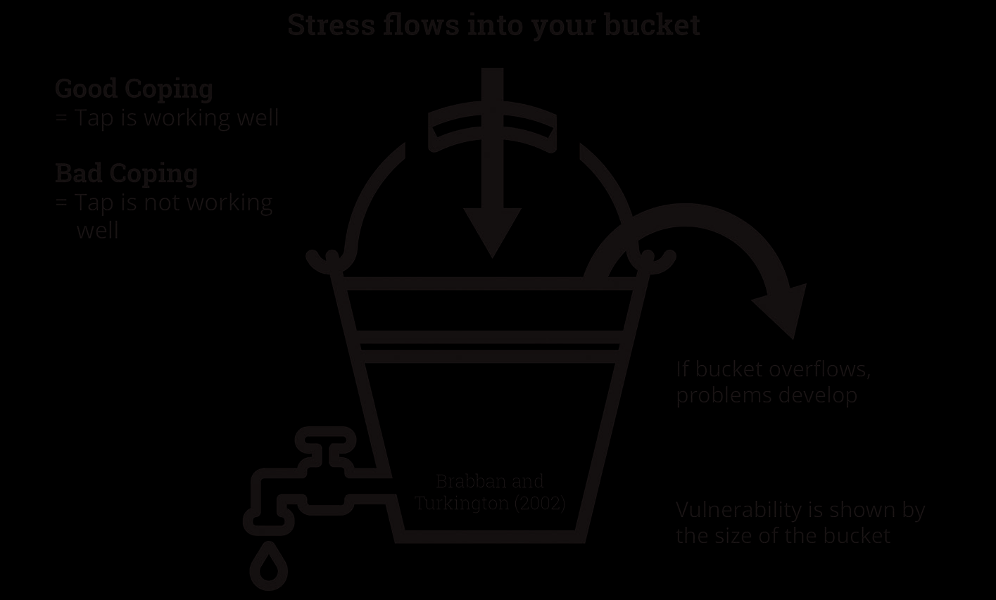 - Our vulnerability is the size of bucket, stress flows into the bucket and if the bucket overflows, we may develop mental health difficultie